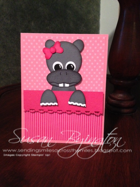 I do have some fun punch art to show you today. These projects were made at our last Funday Sunday event. The original patterns came from Jackie Topa. Of course, I tend to tweak things just a bit. Please leave me a comment and let me know what you think. I just love Henrietta Hippo!