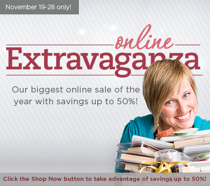 It all begins Monday, November 19 and runs through Wednesday, November 28. The Stampin’ Up On-Line Extravaganza is our biggest on-line promotion of the year with savings up to 50% on some of your favorite products PLUS 24 hour “doorbuster” specials on Monday, November 19 and Wednesday, November 28 that you won’t want to miss!