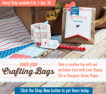 Order the Sent With Love Stamp Set, the Designer Series Paper, or bundle them together and add some Calypso Coral Baker’s Twine. When you bundle them together you get a 20% discount! Only available until April 30. Check out the details here: Sent With Love Special Offer