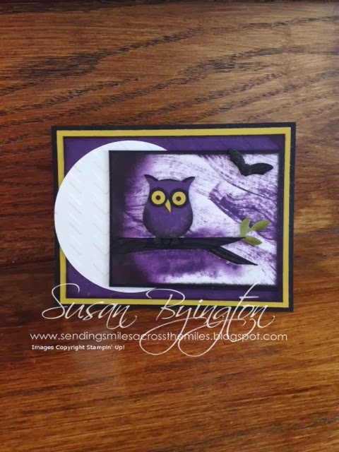 This is one of the cards we made at Stamp Club this month. October is a perfect time for owls, and bats, and spooks, OH MY!