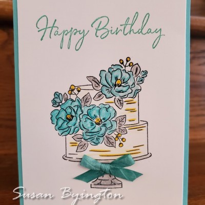 This is one of the cards we made at the Birthday Card Class on February 27th using the Happy Birthday to You Sale-A-Bration stamp set. It is a simple version of the stepped up cards I usually make. I used Watercolor Pencils and a Blender Pen to color the images. The sweet little bow is the White Crinkled Seam Binding that I colored with a Bermuda Bay Stampin' Blends Marker. It dried almost instantly and was easy to coordinate with my project. Adding another bow on ... VIEW POST